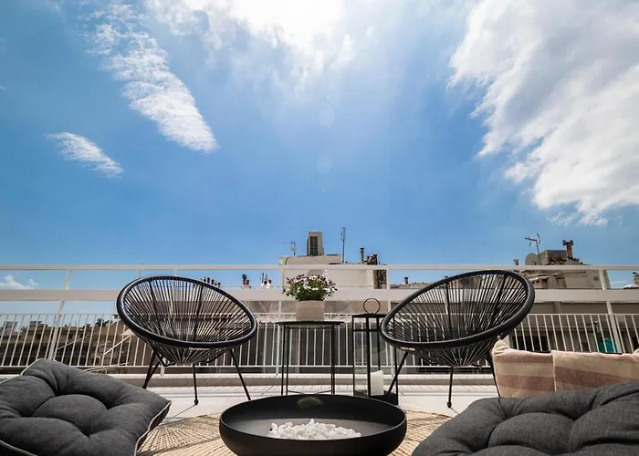 サンデッキ とサンテラスを提供する[Ares Penthouseアパ-トメント]アパ-トはテッサロニキにあります. マケドニア近代美術館から0.8キロ,アタテュルクの生家から900メ-トルです.